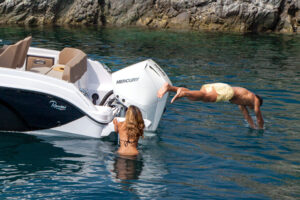 Ranieri Next 220 SH is defined in three words: refined, comfortable and exciting. It is ideal for day trips, swimming and sunbathing trips, as well as exploring numerous beaches and bays. The boat offers plenty of space. On this boat the whole bow can be used as a sundeck. There is also a cabin which lies beneath the sunbathing area.